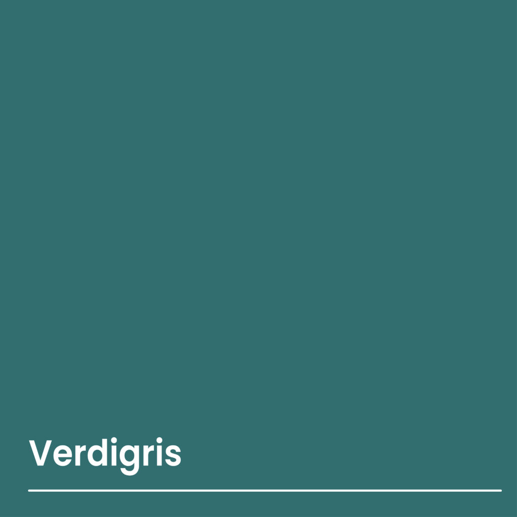 Es una tonalidad energizante que mezcla tonos verdes y azules y aparece como una alternativa menos saturada al verde azulado. Su nostalgia es vigorizante y subraya una vuelta a la naturaleza con el verde como punto de partida. Atractivo tanto para los espacios físicos como para los medios digitales, Verdigris parece ser un tono moderno que resistirá el paso del tiempo.