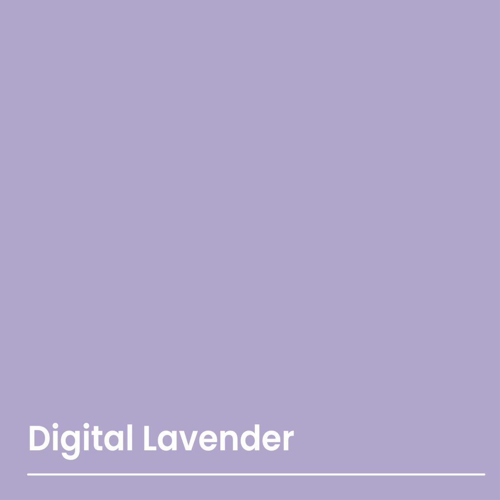 Significa estabilidad, serenidad digital y escapismo. Los tonos de púrpura se han asociado durante mucho tiempo con la espiritualidad, se cree que aportan una sensación de equilibrio. A medida que los consumidores cambian vemos un aumento en el bienestar digitalizado, a medida que las personas buscan obtener el control de su bienestar. Un color que rara vez se encuentra en la naturaleza. La lavanda digital ofrece un vistazo a otras realidades, evocando calma y serenidad.