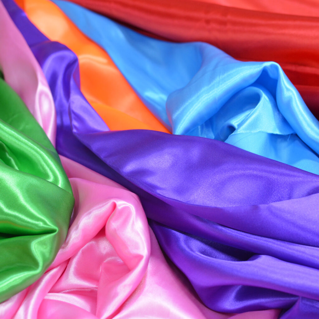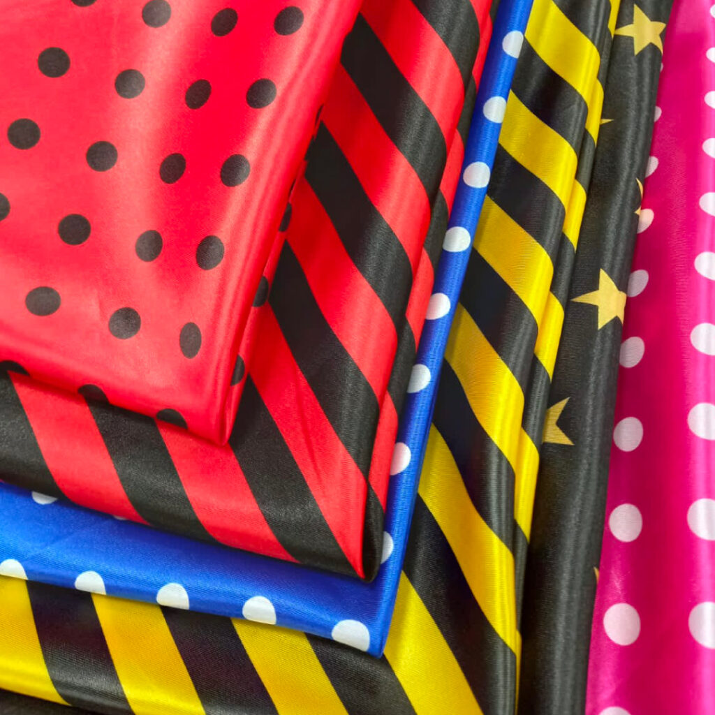 Es un poliéster suave, fresco y cómodo con una superficie brillante y un reverso opaco, es la tela predilecta para confeccionar disfraces, es ideal para capas de súper heroes y faldas de princesas.